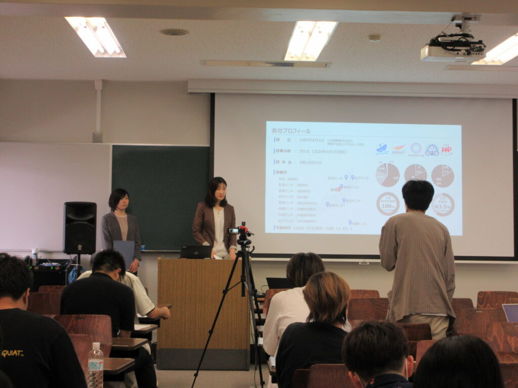 前回の授業までに学生たちはグループワークで組織研究と質問事項の整理を進め、この日の授業に臨みました。各講師の講話後に約40分間の活発な質疑応答が行われました。