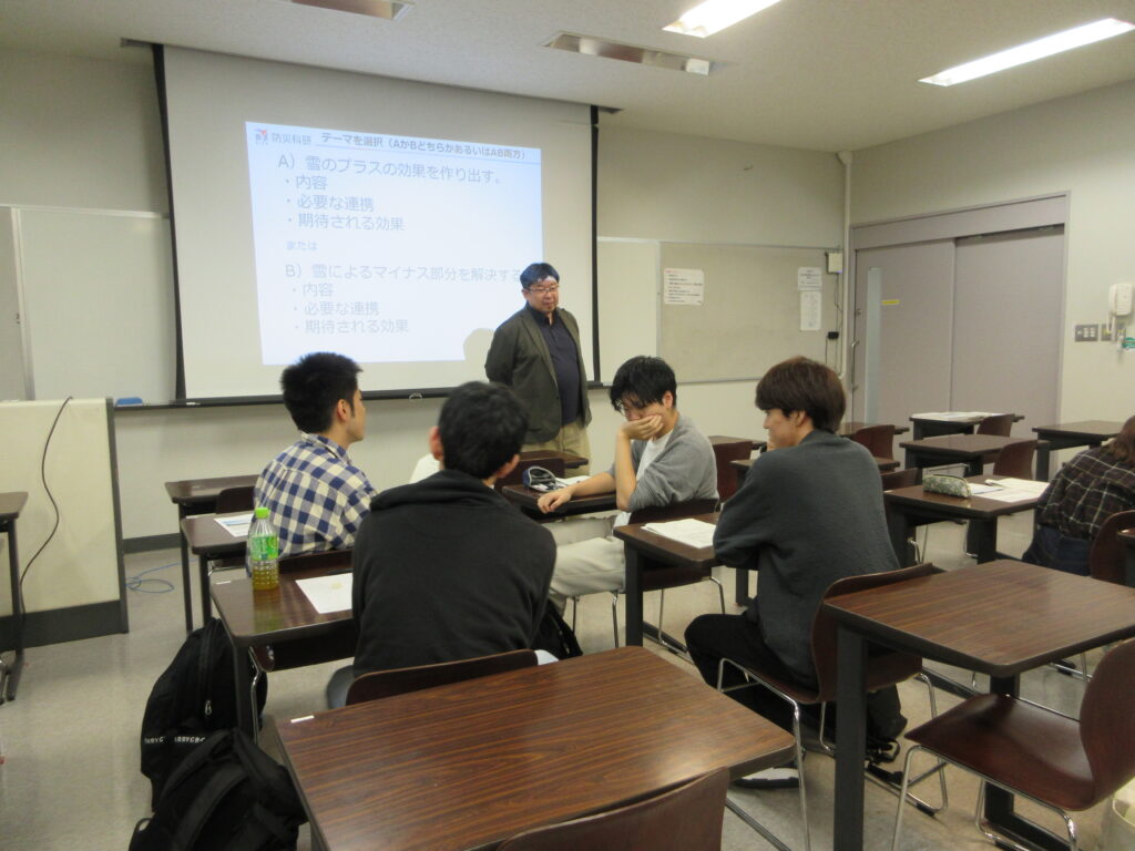 「雪がもたらす『負の側面』と『正の効果』を考える」というテーマで、ご講義いただきました。日本(日本海側)で雪が多いことは、当たり前だと思っていたことが、実は世界的には珍しく、価値があるということを知り、県内出身者が多い学生たちは驚いた様子でした。