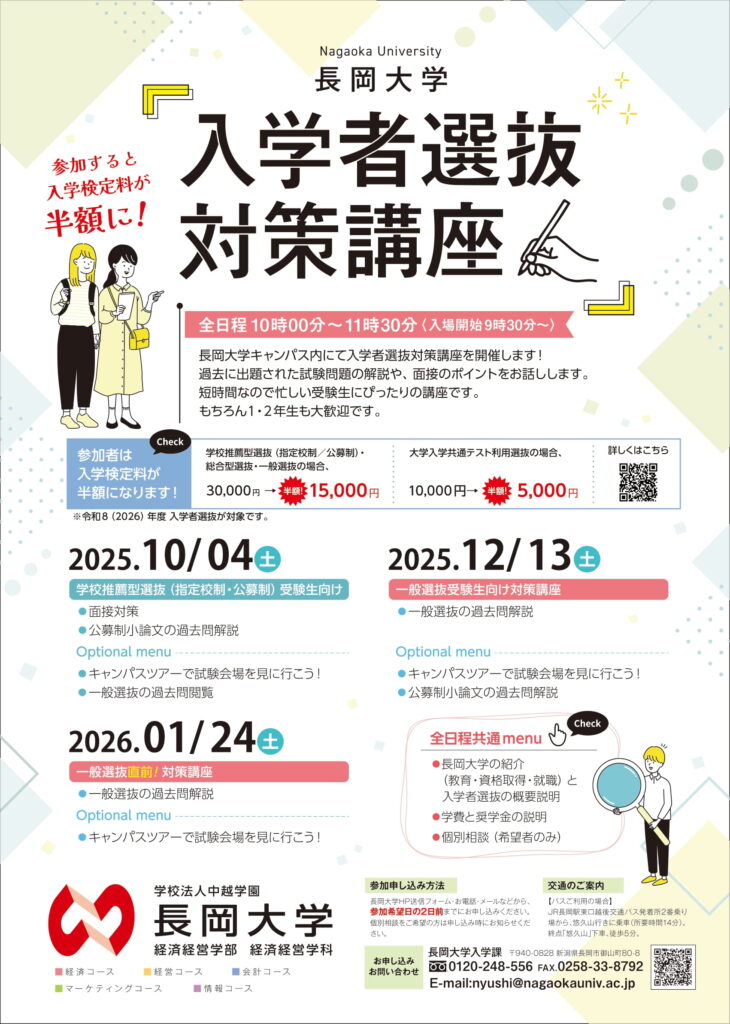 イベントの詳細確認、および参加のお申し込みは、入学者選抜対策講座のページをご確認ください。