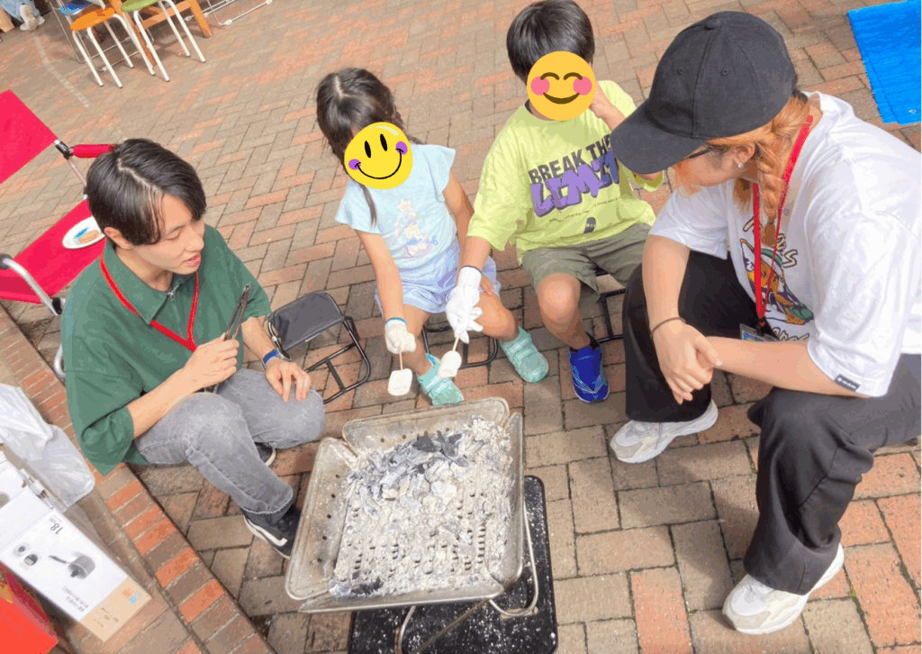 今回から、スモアとポップコーンもメニューに追加し、焚き火を使ったお菓子作りをたくさんの方に体験してもらえました。特に子どもにとって、熱い焚き火の近くでマシュマロを焼いて食べるということは貴重な体験になったようでした。
