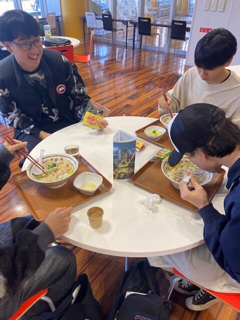当日、ホールにはコーヒーを楽しむ学生が溢れ、学食では初めてのフォーを味わう学生の笑顔が見られました。