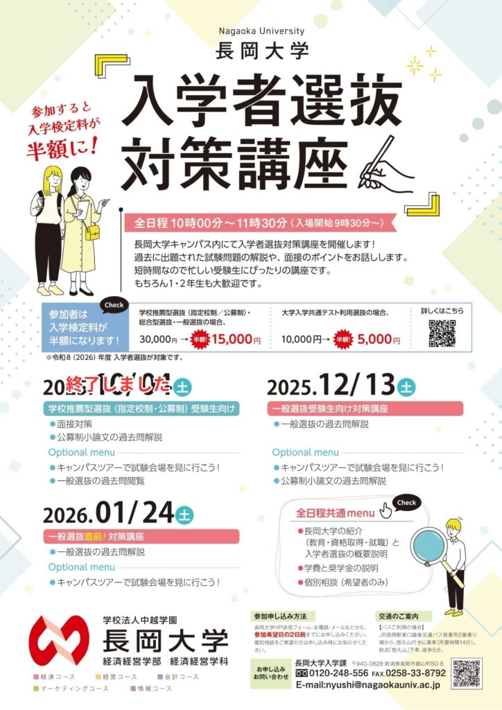 イベントの詳細確認、および参加のお申し込みは、入学者選抜対策講座のページをご確認ください。