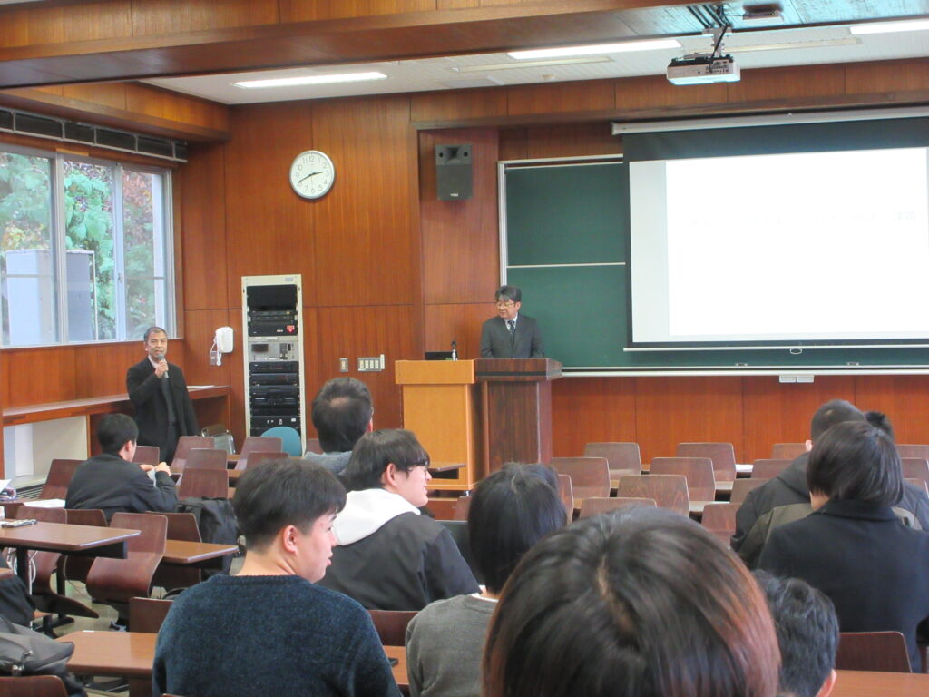 財務省 関東財務局 新潟財務事務所様の寄附講義「暮らしと行政」(担当教員:石川英樹)の11月26日(水)第10回目の授業で、日本銀行 新潟支店長 平形 尚久様にお越しいただき、「日本銀行の役割と新潟県経済の現状と課題」というテーマでご講演をいただきました。