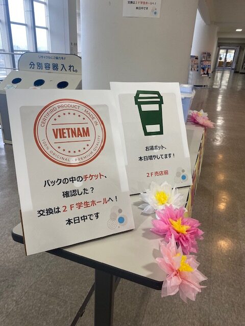 今回はミニ開催として、学食でのフォー提供と、売店でのインスタントフォー・コーヒー販売を中心に実施。どちらのフォーにもコーヒーを添え、ささやかな おまけ交換 の仕掛けを用意しました。