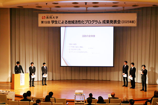 2025年12月6日(土)にホテルニューオータニ長岡 NCホール で開催された、2025年度の「学生による地域活性化プログラム」成果発表会での各ゼミナールの今年度の活動概要や発表概要をお知らせします。