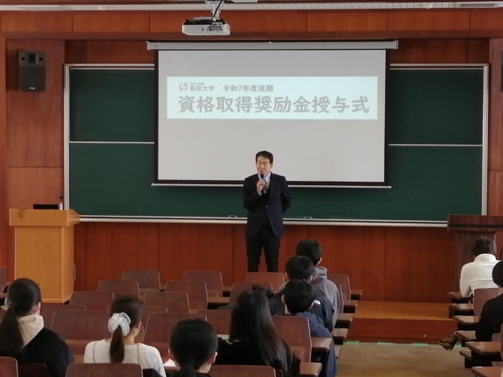 本日の資格取得奨励金を今後の学びや新たな資格への挑戦に役立て、さらに高い目標に挑戦してほしいと思います。長岡大学も皆さんの資格取得をこれからも支援していきます。