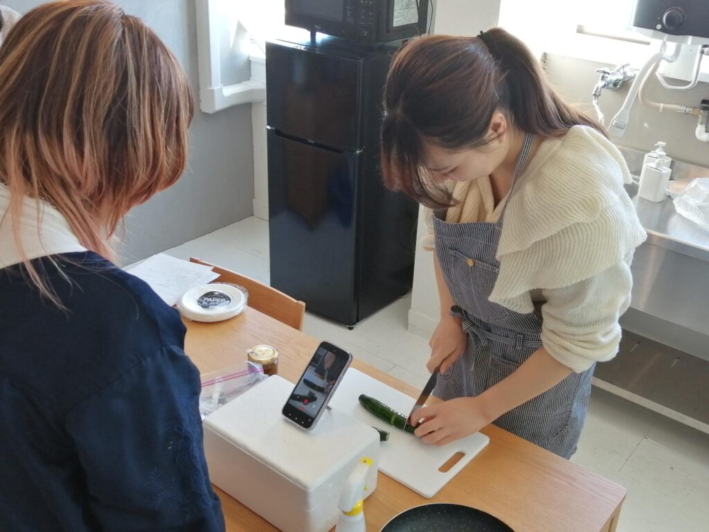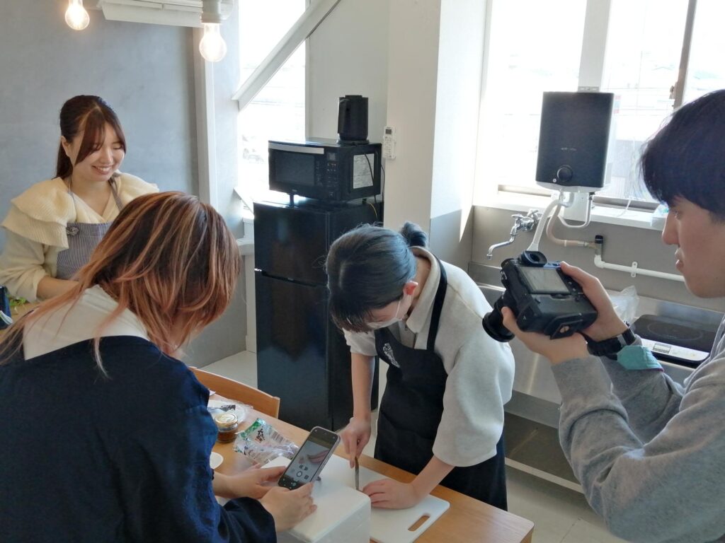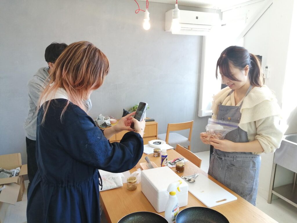 企画の実施にあたっては、複数回のミーティングを重ね、十分な準備を行いました。タレを活用した料理の試作では、一人暮らしの方でも簡単に作れるメニューから、ご家庭の昼食・夕食向けのレシピまで、幅広い層に向けたアレンジレシピを考案しました。また、SNSでのPRを目的とした調理動画の撮影も有志メンバーで行い、株式会社プラスワイズ様に動画として制作・発信していただきました。