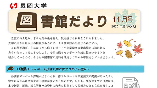 2025年11月10日 「図書館だより」11月号を掲載しました
